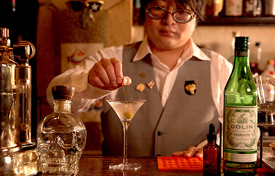 当店では、イギリスのオールドボトル・フランスや日本のジンをブレンドし、そこに数滴だけ、自家製のビターズを。大きなグラスでスワリングしてより香りを増長させたら、森のように奥深く、どこまでも広がり透き通る香りと味わいに。静かな湖面のように悠々しい。